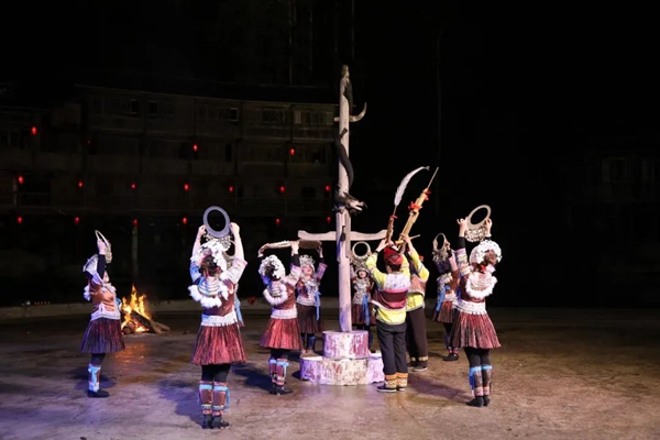 广西柳州市融水苗族自治县香粉乡雨卜村的民俗活动展演之祭芦笙