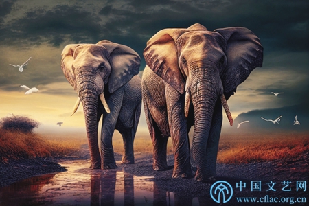 AI生成图像:在喝水的大象