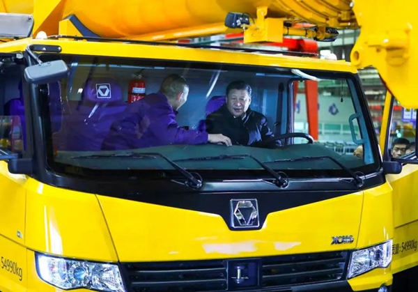 2017年12月,党的十九大后赴地方考察的第一站,习近平总书记来到江苏徐州,在徐工集团重型机械有限公司底盘分厂车间,边走边看,边听边问,沿着220米长的起重机底盘智能生产线从头走到尾。
