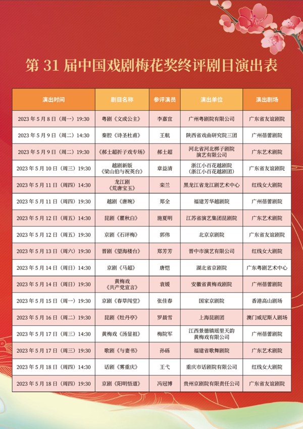 接下来,我们将为您带来其他剧目的演出和现场盛况。5月21日晚,第31届中国戏剧梅花奖获奖者将与第25届曹禺戏剧文学奖的5部获奖剧作一同揭晓,我们共同期待。