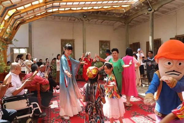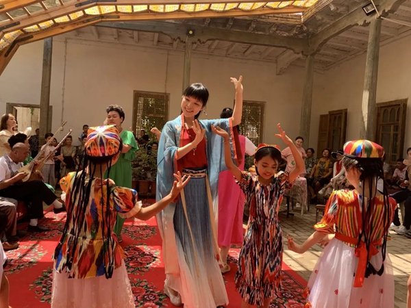 学员们“寻根库车、龟兹在望”,深入老城街区、特色乡镇、基层村落、产业基地,对话库车百姓,用歌声与舞蹈与当地群众亲密交流。
