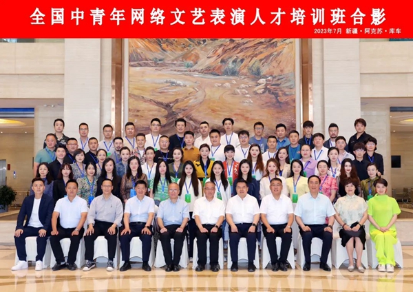 7月7日,为期一周的全国中青年网络文艺表演人才培训班在新疆阿克苏地区库车市结业。本次培训班由中国文联网络文艺传播中心主办,文艺网(北京)传媒有限公司(中国文艺网)承办,中共库车市委、库车市人民政府协办,是中国文联网络文艺传播中心为深入学习贯彻习近平新时代中国特色社会主义思想和党的二十大精神,贯彻落实习近平总书记文艺工作重要论述精神,学习贯彻习近平总书记在文化传承发展座谈会上的重要讲话精神,担负起在新的起点上继续推动文化繁荣、建设文化强国、建设中华民族现代文明这一新时代新的文化使命,推进中国文联文化润疆工作部署,推动网络文艺表演精品创作与传播而举办。本次培训班共有62名青年网络文艺工作者参加培训,分别来自20多个省区市、8个民族,覆盖影视表演、音乐、舞蹈、曲艺等9个文艺领域。