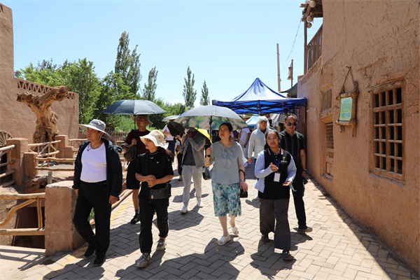 采风团一行来到吐峪沟麻扎民俗村参观当地古民居