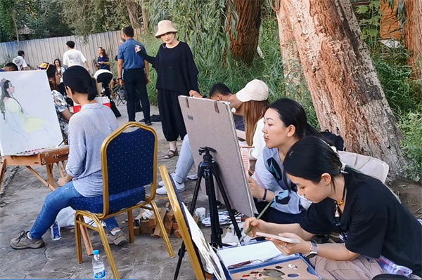 采风团在葡萄沟写生创作
