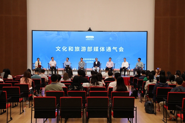 8月28日,文化和旅游部在中国工艺美术馆 中国非物质文化遗产馆举办媒体通气会。通气会由文化和旅游部办公厅(新闻中心)负责同志主持,非物质文化遗产司、国际交流与合作局、中国非物质文化遗产保护中心、中国工艺美术馆(中国非物质文化遗产馆)负责同志围绕非遗保护传承作互动交流,中国歌剧舞剧院、中国非物质文化遗产保护协会有关负责同志及微博代表分享非遗宣传经验。来自39家主流媒体和新媒体机构的记者代表62人参加通气会。