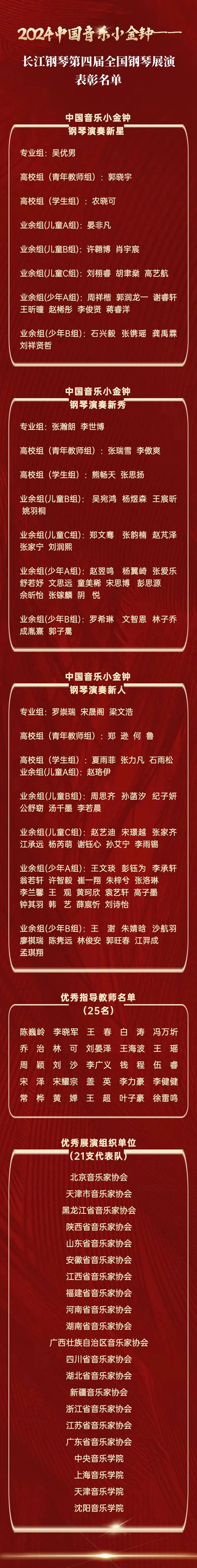 7月17日晚,由中国音协、宜昌市人民政府主办的2024中国音乐小金钟——长江钢琴第四届全国钢琴展演闭幕式音乐会在湖北宜昌举办。