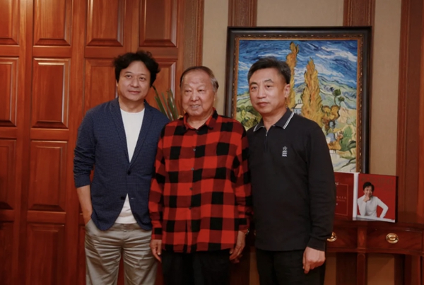 舒楠(左)、张和平(中)和《百年巨匠》出品人、总策划杨京岛(右)在采访现场。中国文艺网 高森 摄