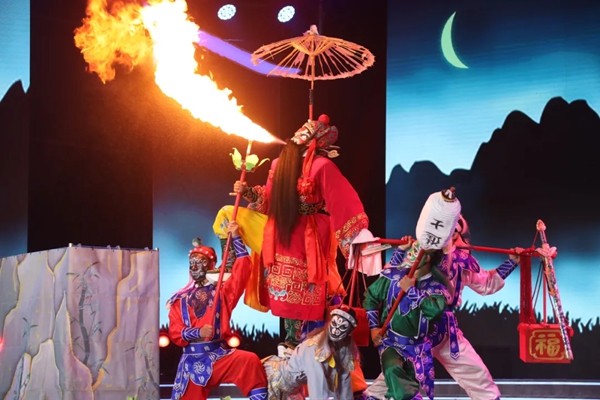 杨学东展演带来的作品是晋剧《钟馗嫁妹·行路》,这个节目的歌舞性很强,载歌载舞的艺术特点非常明显。剧中的钟馗抖肩、抖胯、耍扇,动作夸张优美;三起三落的朝天蹬拾扇动作极富情感层次;钟馗和“小鬼们”的下高等身段组合极具表现力。这些高难度动作,他完成得干净利落、精准到位,引发现场观众掌声不绝,叫好声不断。
