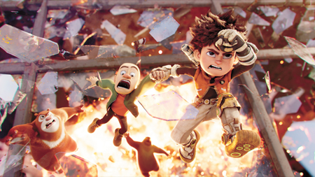 从电视动画转向动画电影,“熊出没”系列的最大变化是改变了原来类似《猫和老鼠》的情节模式,其中最突出的表现是让光头强和熊大、熊二走到一起、成为朋友,不仅消解了原来的矛盾冲突,而且结成了一个“正义联盟”,共同对付另外出现的“大反派”。为此光头强的造型设计也改变了,从原来皮肤黝黑粗糙、鞋拔子脸上留八字胡须的中年丑大叔变成了脸色白净、圆润的美少年。相对于原来的“老”与“丑”,新的光头强造型已可以算是“少”与“美”了,这也体现了现代大众文化语境下IP生产消费的特点。也因此,新的系列动画电影的各部往往会创造一个新的“大反派”,同样会根据剧情需要增加若干正面人物,作为配角甚至主角,与贯穿始终的“光头强+熊大、熊二”组合成为更大的“正义联盟”,完成这些影片相对独立的情节叙事和思想内容表达。