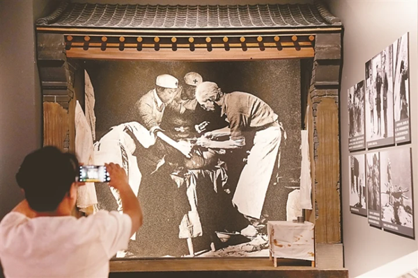 9月7日,北京中国国家博物馆,嘉宾在“国际友人与中国抗战”专题展览参观加拿大医生白求恩救治伤员时的场景。据了解,“国际友人与中国抗战——纪念中国人民抗日战争暨世界反法西斯战争胜利80周年专题展”分为“报道·发声”“军事·战斗”“救护·医疗”“援助·捐赠”四个单元,系统展示为中国抗战胜利作出贡献的国际友人和组织的光辉事迹。展览将于9月9日在中国国家博物馆开幕。中新社记者 张祥毅 摄