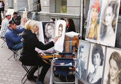 街头作画的艺人是阿尔巴特街上一道独特的风景