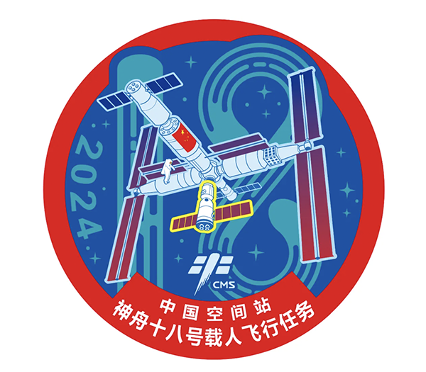 本届展览入选作者曹傲冬在介绍参展作品《神舟十八号载人飞行任务标识》设计理念时说道,标识中数字“18”与敦煌壁画中“飞天飘带”融合设计,将千年飞天梦想与当代航天壮举巧妙连接,形象化呈现中国航天的“飞天”梦想。这种设计延续了“神舟系列”勋章式造型的视觉体系,结合中国红与航天蓝的配色传递国家荣誉感,应用仰视视角表现中国空间站塑造国家的宏伟形象,让传统文化符号在太空探索中焕发新生,标识中象征18次飞行任务的星星,正是民族精神与时代使命的同频共振。