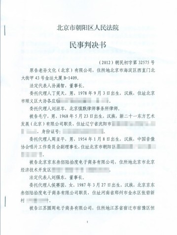 去年,歌曲《传奇》(注:原唱者为李健)的版权所有者老孙文化(北京)有限公司把翻唱过这首歌的王菲和毛宁分别告上法庭,称两人有侵权行为。其中毛宁一案先有了判决,3月19日,北京市朝阳区人民法院驳回了原告的诉讼请求。原告老孙文化公司的代理人丁笑天对将继续上诉维权。而王菲官司仍在进行中。