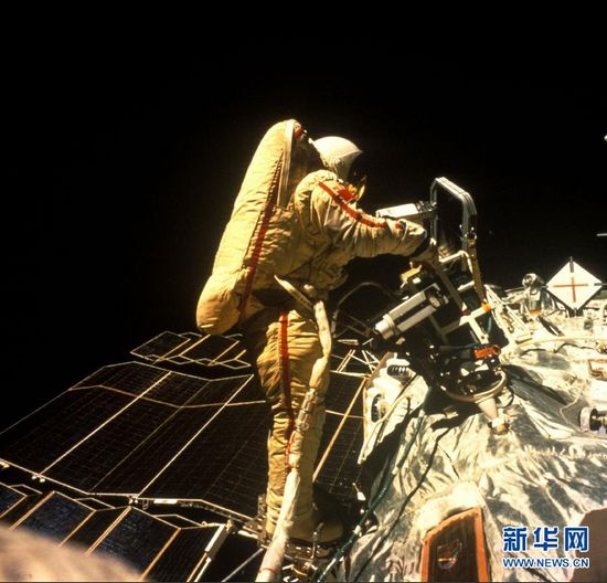 1984年7月25日,苏联女宇航员斯维特兰娜·萨维茨卡娅走出“礼炮7”号空间站,从而成为世界第一个太空行走的女性。 新华社发
