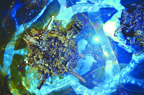 这是梦的境界:《自然生态》《生态家园》《夏之韵》《荷塘秋韵》《童话世界》《电子结构》《热带雨林》《宇宙空间》……这幅如春花灿烂,那幅似秋叶斑斓,此幅像飞云幻化,彼幅胜冰雪净静,取材于世博不易为人觉察的景象,描述出心灵“中国梦”的境界。