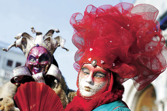 威尼斯狂欢节是当今世界上历史最悠久、规模最大的狂欢节之一。每年狂欢节,人们都会头戴面具、身穿华丽服饰一起狂欢。图为二月五日,在意大利威尼斯圣马可广场,一名头戴面具的狂欢者参加狂欢节。 新华社/路透