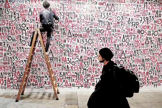 2月14日,在西班牙马德里举行的西班牙当代艺术博览会预展上,一名技工修饰打磨一件作品。2月15日,该博览会正式开幕。