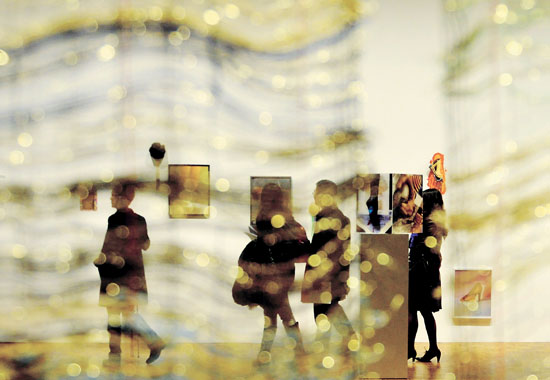 2月27日,在美国纽约惠特尼博物馆,观众在惠特尼双年展媒体预展上参观。