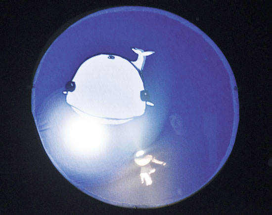 三月二十一日,澳洲泪汤匙剧团的单人表演《深海历险记》在台北戏剧院彩排。该剧采用多媒体技术与人类表演相结合的表现方式,讲述了深海冒险家艾文·斯普尼克只身潜入深海探险的故事。 新华社发