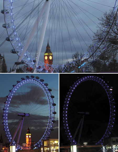 英国伦敦,“地球一小时”中的大本钟和摩天轮。 新华社发 殷刚 摄