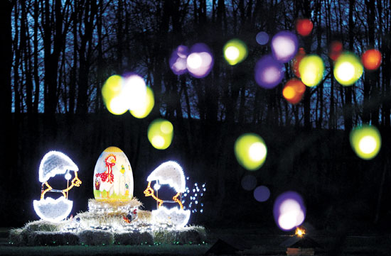 为庆祝复活节,萨拉伊一家用2700多个彩蛋把他们的花园装饰一新,并用彩灯设计成兔子、公鸡等卡通形象。