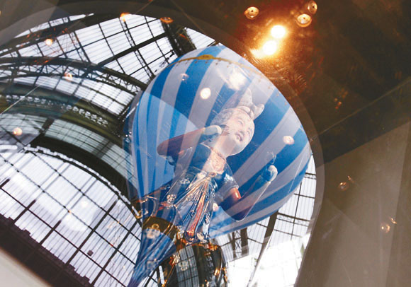 汇集世界顶级艺术品收藏的第26届法国巴黎古董双年展于9月14日至23日在巴黎大皇宫举行。来自法国以及世界各地的150家参展商在双年展期间向公众呈现15类不同的珍品,涵盖绘画、雕塑、古书、手稿、家具、珠宝等在内逾千件展品,其中部分展品是首次公开露面。而随着亚洲古董市场的持续升温,古董双年展将其目光投向亚洲,众多来自中国以及亚洲其他国家的艺术品亮相并引起广泛关注。图为法国巴黎第26届古董双年展上,中国唐代唐三彩女俑与映射在玻璃上的展厅背景相映成趣。
