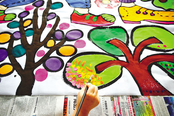 3月8日,天津少年宫开启“播种绿色希望”系列活动,组织小朋友们共同绘制以“建设美丽天津 播种绿色希望”为主题的水彩画长卷,引导孩子们关心家乡建设,树立环保意识。图为一位小朋友在绘制水彩长卷。