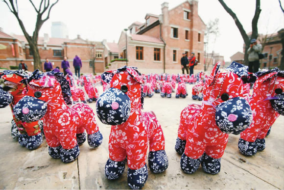 由天津一家艺术体验中心策划的“千马游津城”公益之行的天津市区首场活动日前在位于天津五大道地区的先农大院举行。一千只布偶马摆放在有百年历史的建筑之中。该项公益活动的发起者旨在通过特别的视角来呈现天津,记录城市的发展进程。活动还将逐步走进北京、石家庄等京津冀地区的城市,呈现京津冀地区发展历程。图为在天津先农大院里拍摄的千只木偶马。