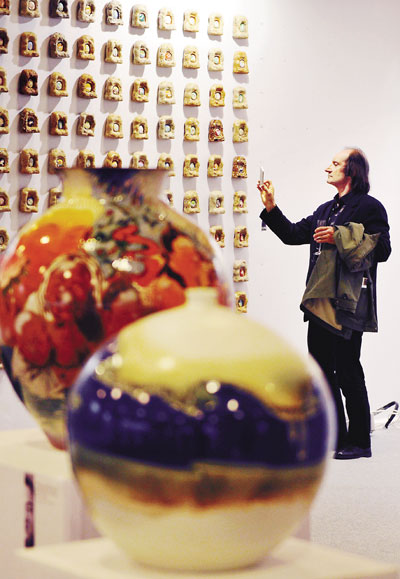 4月17日,为纪念中法建交50周年,为期一周的“视觉中国·瓷上敦煌”中国陶瓷艺术展在巴黎卢浮宫开幕。93位中国艺术家携135套共计1353件当代陶艺精品参展。