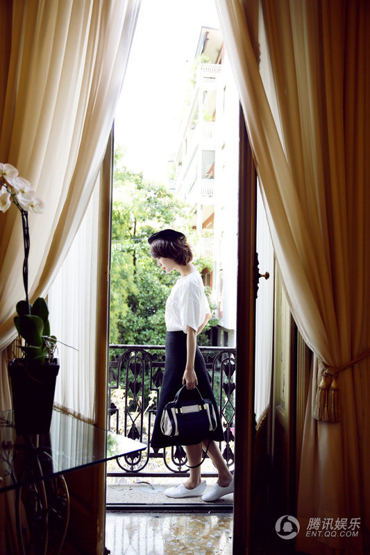 王珞丹黑白搭配复古清新 低眉浅笑文艺范儿十足