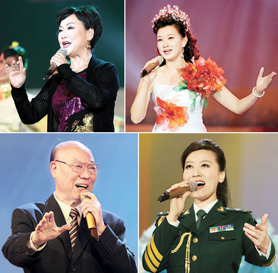 2011年6月,“百花芬芳·党的旗帜高高飘扬——中国文学艺术界庆祝中国共产党成立90周年主题系列演出”在京举行。图为“红歌传万代”演唱会现场