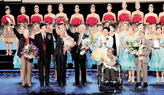 2009年,第八届中国摄影金像奖终身成就奖获得者上台领奖