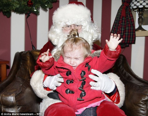 据外电11日报道,一趟能看到圣诞老人的旅行应该是孩子们在圣诞节里最大的乐趣之一了。但是,当真正面对着一个巨大的、不熟悉的身影(有时还黏贴着可疑的塑料胡须)时,这些小孩了们显然还是受到了惊吓,甚至试图逃跑。