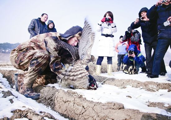 当日,有“鹰屯”之称的吉林省吉林市昌邑区土城子满族朝鲜族乡渔楼村第二届鹰猎文化节开幕。40多名当地俗称“鹰把式”的驯鹰人进行了驯鹰、撒鹰捕猎等项目的表演,让游客们近距离感受神秘的鹰猎文化。