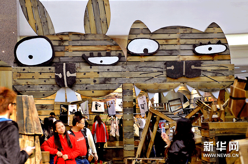 日前,香港艺术家王天仁“朽木都可雕”《动物农场》个人作品展在香港时代广场举行。毕业于香港中文大学艺术系的王天仁用废旧木材拼砌出形象夸张的卡通动物形象,其作品多次在海外展出。新华网图片 陈晓伟 摄