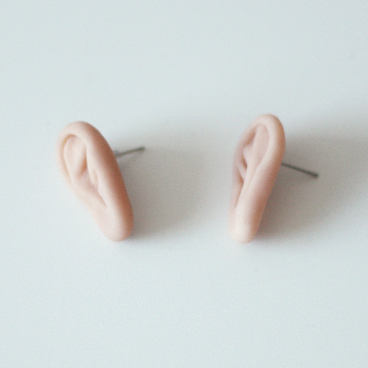 耳朵上多一个小号的耳朵?伦敦设计师Percy Lau的饰品设计,把人的某些器官缩小了用皮肤色的材质制作成耳饰、戒指或是项坠,给人一种说不出的诡异感觉。
