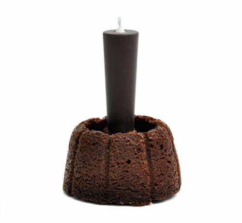来自法国的设计Stphane Bureaux 设计了这个巧克力蜡烛,完全可以食用。将这个名为“Fujisan”巧克力蜡烛插在蛋糕上,点火,也就一首生日歌的功夫,蜡烛就会慢慢的融化成液态的巧克力,其实蜡烛中间的芯是一根空心的金属管,除了可以加快巧克力的融化速度,还可以将棉芯和巧克力隔离。