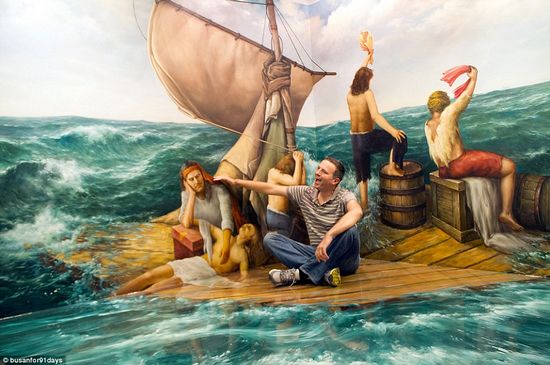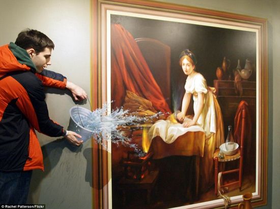 据英国《每日邮报》7月2日消息,越来越多的游览者开始喜欢位于韩国首尔的3D幻觉立体美术馆(Trick Eye Museum),那里收藏了各种主题的三维视觉效果图画。据悉,美术馆展示的作品风格独特,画面中的人物和一些道具经常伸出框架外。观赏者接触这些独具匠心的设计,仿佛“进入”到作品中。