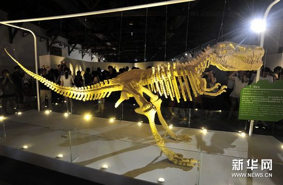 (2)这是7月14日在台北“积木梦工场”拍摄的“恐龙”积木艺术作品。该作品使用8万片积木制作而成。