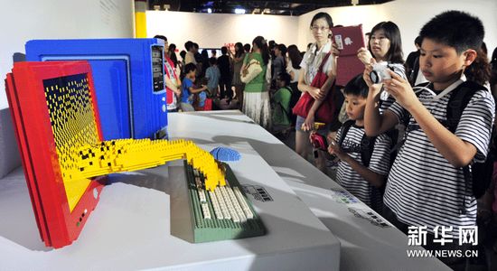 (4)7月14日,参观者在“积木梦工场”欣赏积木艺术作品。