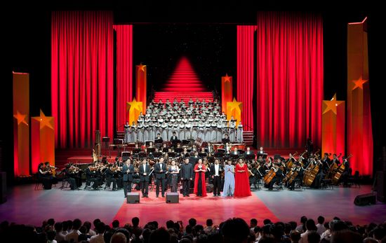 7月12日至15日,由中国文联和国家大剧院共同发起的“党的旗帜高高飘扬”大型系列音乐会将亮相国家大剧院。此次音乐会汇集了老中青百余名歌唱家与百余首人们耳熟能详的经典红色歌曲。