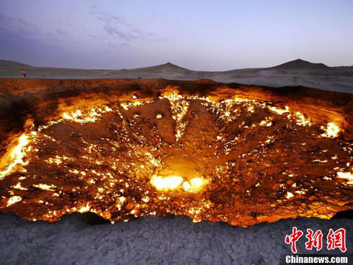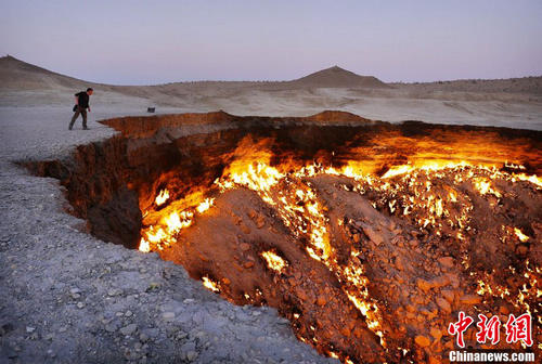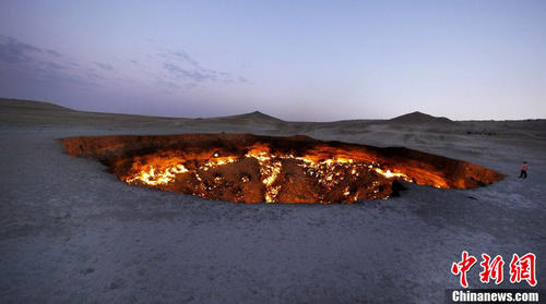 摄影师Amos Chapple穿越土库曼斯坦的Karakum沙漠,拍摄到了被喻为“地狱之门”的达尔瓦扎天然气坑洞。该坑洞于1971年被前苏联一位地理学家发现,该区域蕴藏着大量的地下天然气,在开采过程中,由于不慎出现钻探坍塌,从而形成了一个非常大的坑洞。为了防止有毒气体溢出,土库曼斯坦政府允许对坑洞中的天然气进行燃烧,这个坑洞从白天到晚上一直处于烈火燃烧状态。因此,这处燃烧的天然气坑洞也被人们称为“地狱之门”。