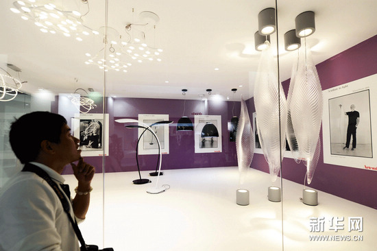 (4)10月9日,观众在欣赏意大利设计师的灯具设计作品。