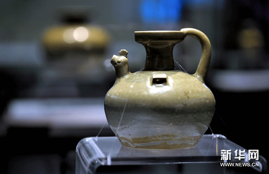 (1)这是1997年港英政府移交的中国东晋青釉鸡首壶(12月25日摄)。