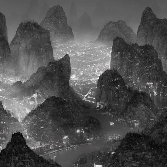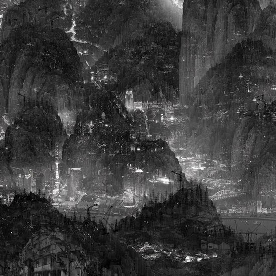 很多人第一眼看到这些作品会认为它们全都是中国水墨画,但细看之下你就会发现这水墨中不仅有着山水的景色,还有零落的人类建筑以及充满未来主义色彩的城市都市缩影。艺术家杨泳梁,1980年出生于上海嘉定,年幼师从香港中文大学导师杨洋,接受了国画,书法等传统艺术学习近10年,后回到上海,在上海工艺美术学院和中国美院上海设计分院学习视觉传达设计专业。