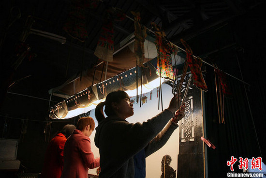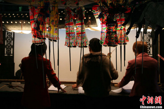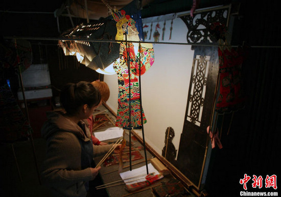 5月14日,浙江海宁盐官景区皮影戏馆内,皮影戏艺人演出古老的中国式动画——皮影戏。据悉,海宁皮影戏源于南宋时期,它随宋室的南迁而流传江南,至今已近900年历史,是中国皮影序列的重要分支。继2006年列入国家级非遗名录后,2011年底,海宁皮影戏作为中国皮影戏的重要组成部分,入选世界人类非物质文化遗产名录。