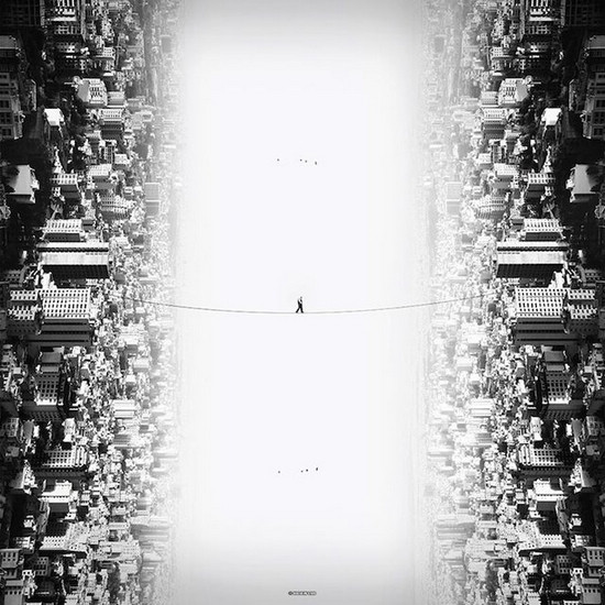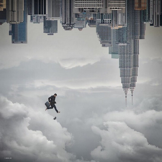 伊朗摄影师 Hossein Zare 总是能用他的相机和PS技术带领人们进入超现实世界,使人感觉仿佛置身梦境。Hossein先前拍摄过一组描画一个孤独男人走在荒凉的路上的极简黑白照。最近,他又推出了融入彩色元素的新作,以独特方式呈现了城市风光与自然风景,将人带入一个上下颠倒的神奇世界,部分新作采用暗色调来营造奇异的环境。
