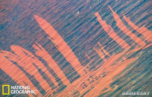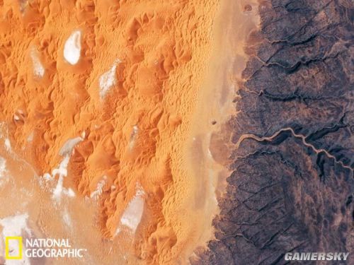 这是阿尔及利亚东部撒哈拉沙漠的尽头。蒂夫奈恩沙丘场(Tifernine Dune Field)——大尔格(Grand Erg Oriental)沙丘海的一部分——与蒂恩赫特高原(Tinrhert Plateau)在这里交汇。