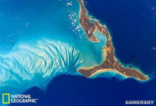 这是拉丁美洲巴哈马群岛(Bahamas)中的伊柳塞拉岛(Eleuthera Island)。在蓝色海洋的包围中,该岛显得闪闪发光。