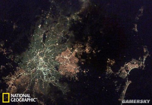 在这幅照片中,巴西圣保罗市像一个灯塔。灯光颜色的变化是由于该市使用了各种不同类型的路灯。